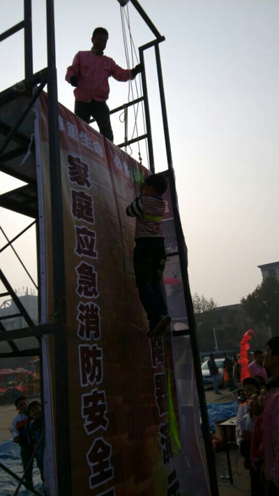 學(xué)生等待體驗高層樓宇緩降器