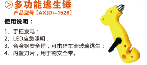 在擊打過程中,我們不能直接用它擊打玻璃的中間部位,而是首先要擊打玻璃的四個角,然后用力的擊打玻璃的中間部位。在錘尖砸碎第一層玻璃后,再向下拉,將夾膠膜拉破即可逃生。