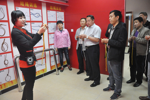 領(lǐng)導(dǎo)及社區(qū)居民們體驗(yàn)結(jié)繩自救項(xiàng)目