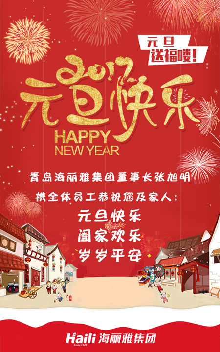 元旦送福!青島海麗雅集團董事長張旭明攜全體員工恭祝您及家人:元旦快樂,闔家歡樂!