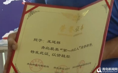 2019年7月30日,青島市應急管理局、青島市紅十字會、青島海麗雅集團共同為島城跳海救人“超人”王延祥送上青島“第一響應人”獎勵基金和證書.