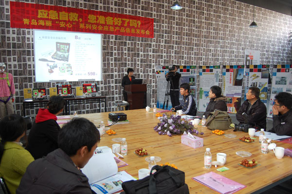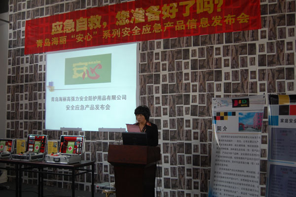 億和海麗“安心”系列安全應急產品信息發布會于2010年11月19日在青島億和海麗高強力安全防護用品有限公司一樓順利舉行! 四方區組織部、企業工委及青島電視臺今日欄目、青島日報、青島早報、半島都市報等各大媒體,參加了產品發布會,并觀看了“安心”系列安全應急產品現場演示。 57歲退休老職工梁子蘭成為本次演示現場的最大亮點! 此次產品發布會的的舉行受到了各界領導和社會媒體的大力贊揚和好評!