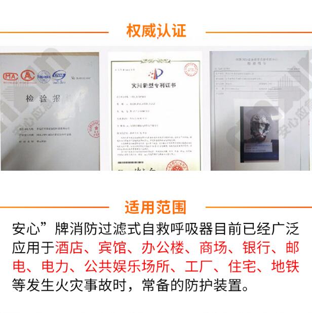防火呼吸面罩是賓館、辦公樓、商場(chǎng)、銀行、郵電、電力、醫(yī)院、地鐵、輪船、車站、碼頭、公共娛樂(lè)場(chǎng)所和住宅等預(yù)防火災(zāi)事故時(shí),重要的個(gè)人防護(hù)呼吸保護(hù)設(shè)備。