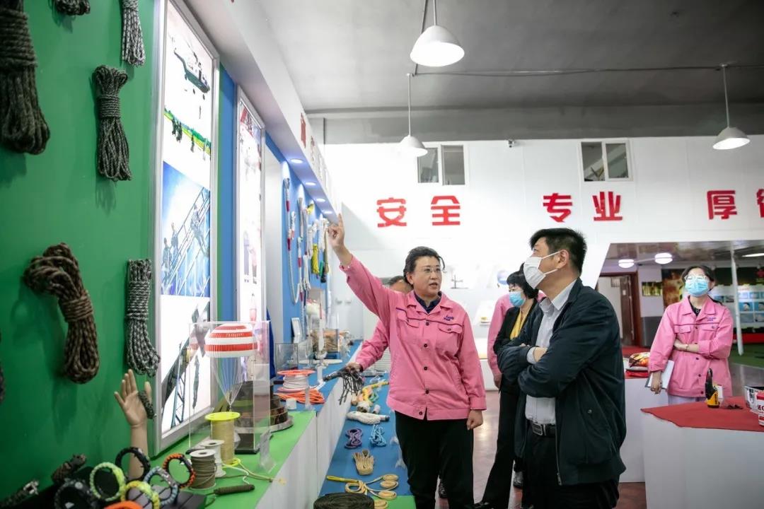 張旭明向楊長(zhǎng)軍一行介紹了集團(tuán)發(fā)展歷程、創(chuàng)新升級(jí)與人才團(tuán)隊(duì)建設(shè)等情況。考察團(tuán)現(xiàn)場(chǎng)體驗(yàn)了集團(tuán)應(yīng)急安全培訓(xùn)項(xiàng)目,并對(duì)公司特種繩纜的研發(fā)與應(yīng)用有了深入的了解。
