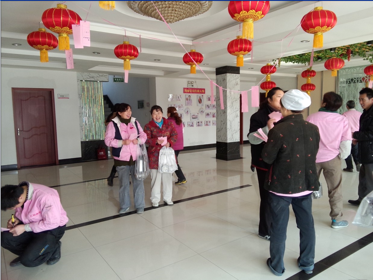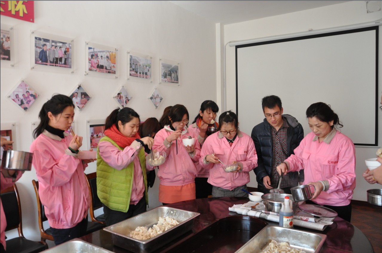 鬧元宵:“每逢佳節倍思親”, 節日當天,因公司非本市員工不能與家人團聚共渡佳節,在董事長提議下,黨支部副書記、工委主席崔俊芬女士帶領大家一起,專門為外來務工人員和在公司住宿的大學生煮元宵、包水餃,并同大家一起過節。領導的體貼和關懷,讓大家切身感受到“海麗大家庭”的溫暖。